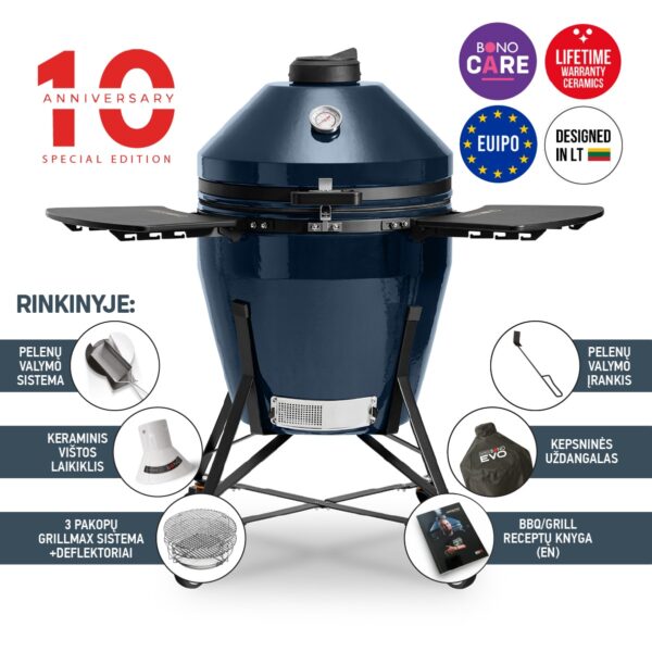 Kamado Bono EVO – naujausia ir pažangiausia kepsninių serija, kurią sukūrė tarptautinius apdovanojimus BBQ čempionatuose skinanti grilio meistrų komanda, glaudžiai bendradarbiaudama su gamybos technologijų inžinieriais užsienyje ir produkto dizaineriu Lietuvoje.